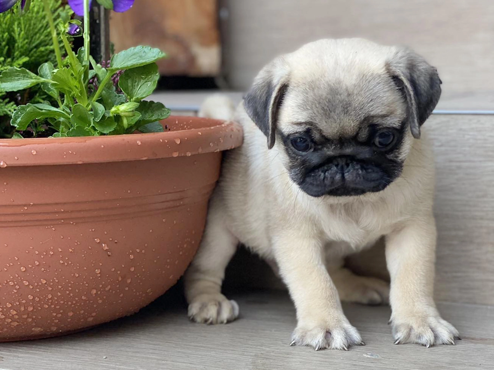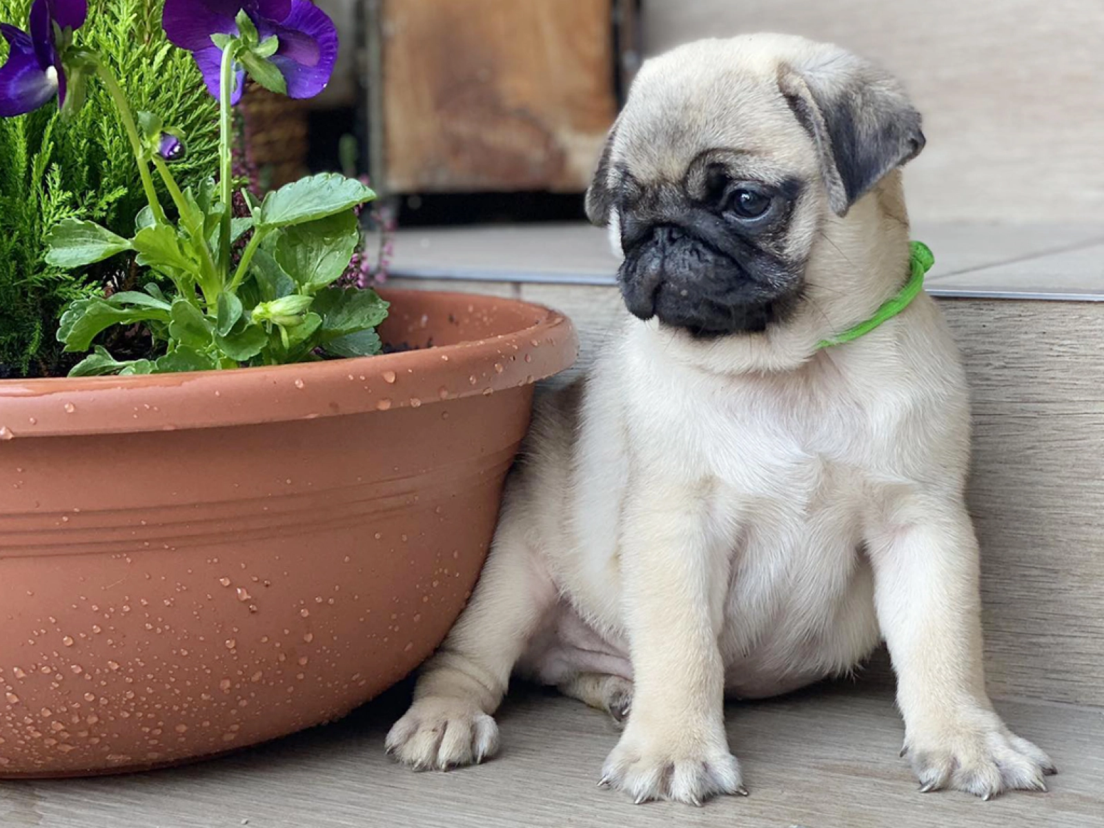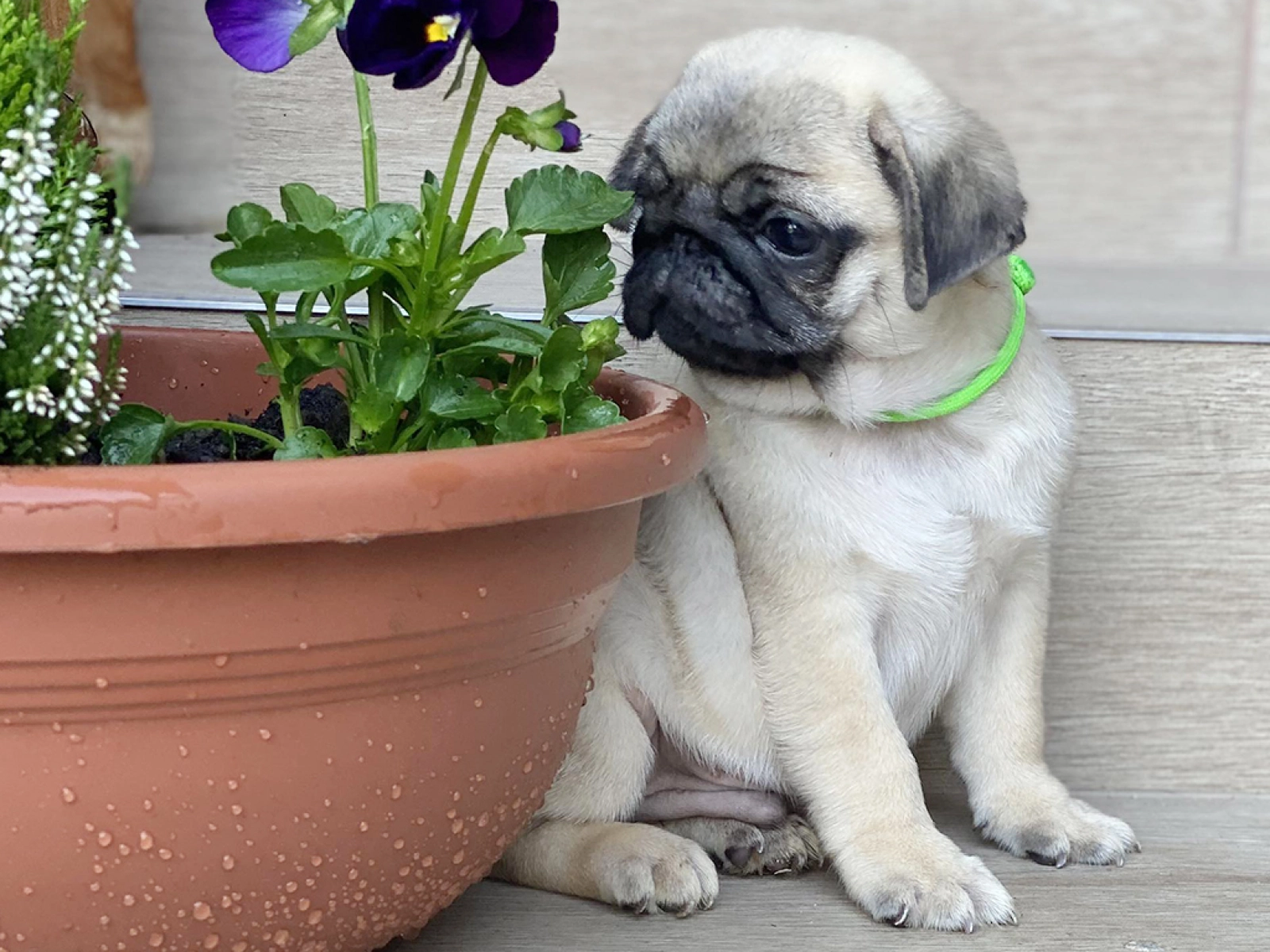 Look at Me loves everyone he meets, and is the friendliest pup of this Pug litter.