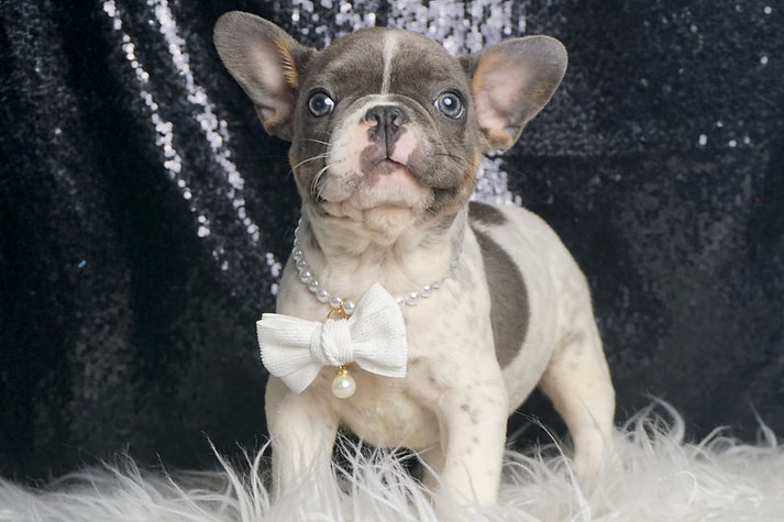Their fine coat may be any number of colors, such as Brindle, Grayish Brown (Fawn), or White to name a few. The French Bulldog has a strong large head with heavy wrinkles rolled above their nose.